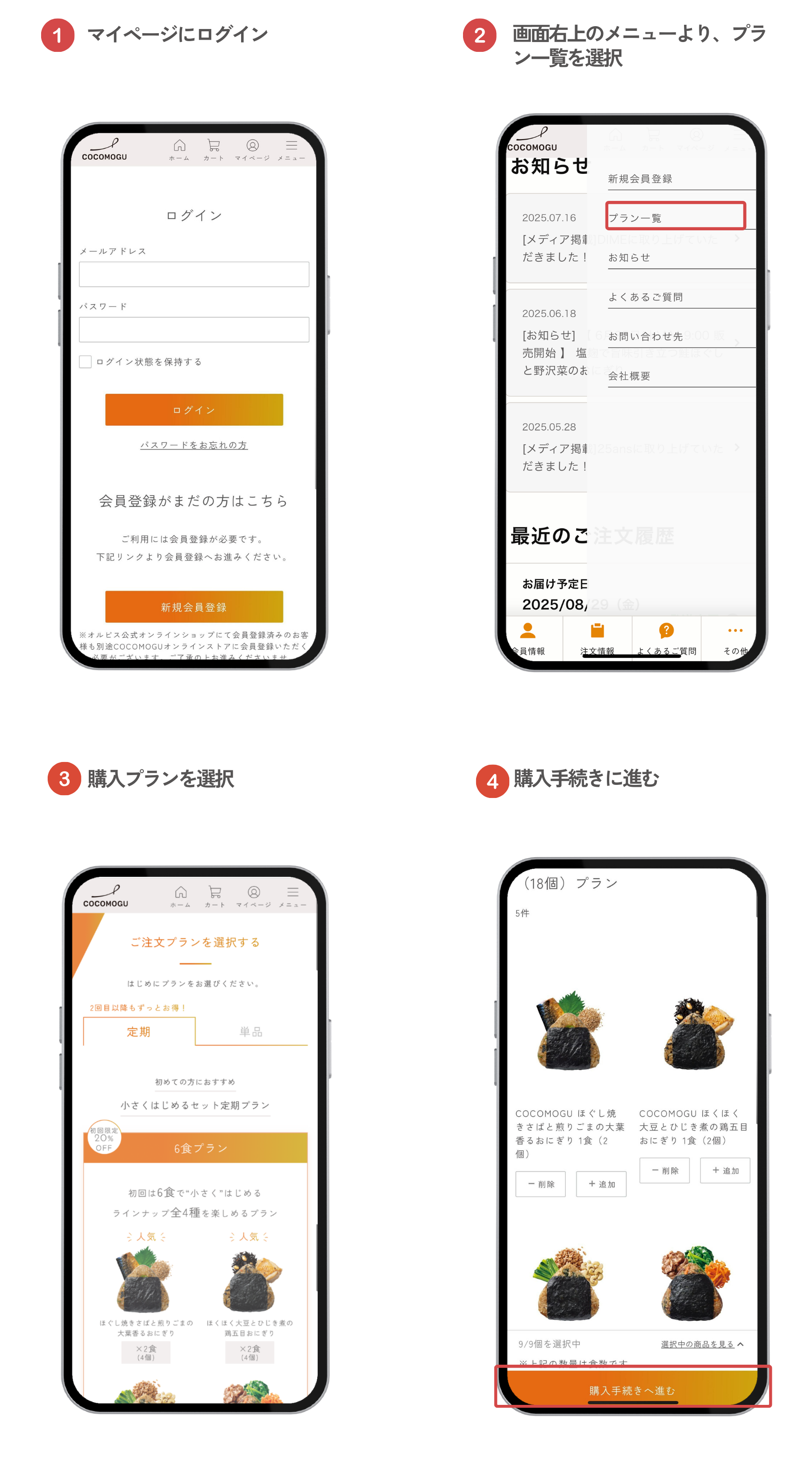 既にCOCOMOGUをご利用いただいたことがある方は、ログイン後のご購入を推奨しております。